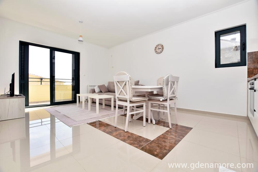 U spavaćoj sobi ima francuski ležaj, i klik klak kauč u dnevnoj sobi, što znači da u apartmanu mogu boraviti 4 osobe. Nema dodatni krevet.